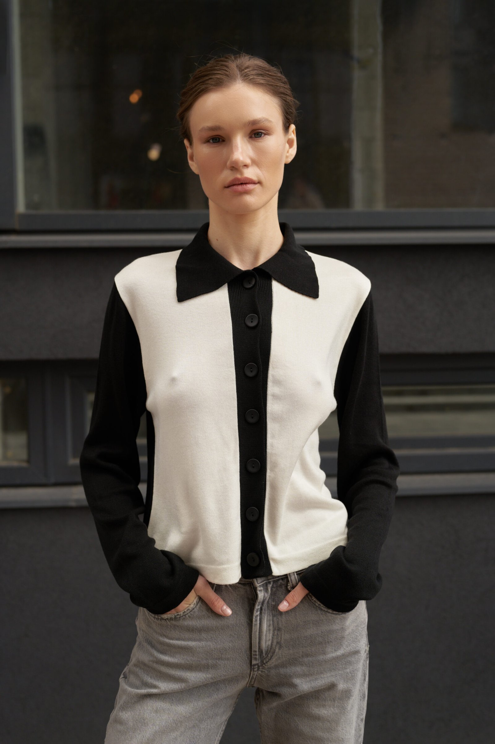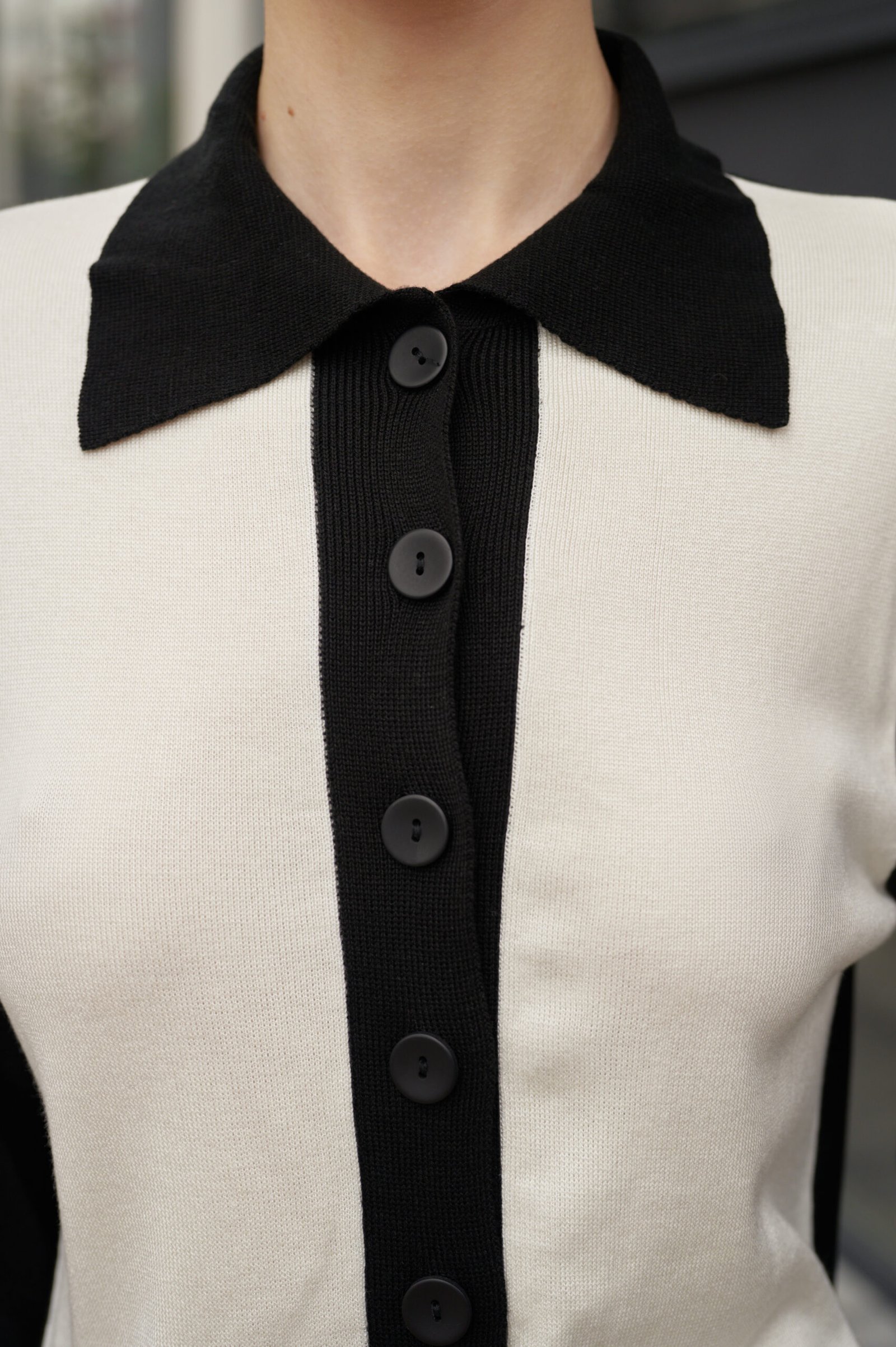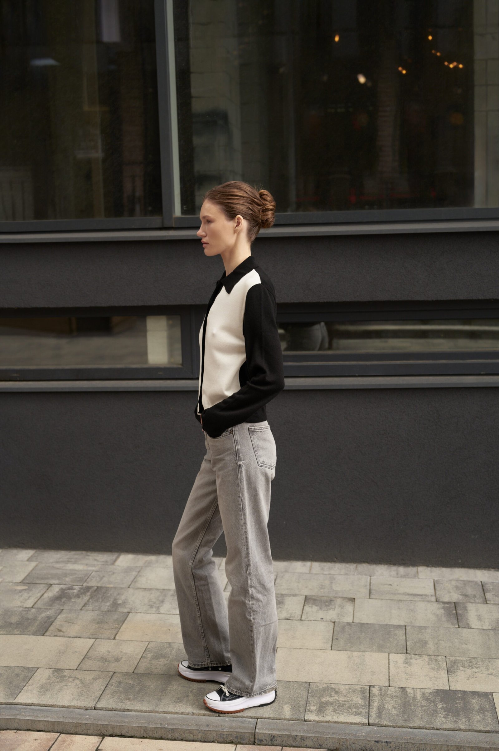 Кардиган “Black and White” – це твоя нова улюблена класика з характером. Ми поєднали в ньому лаконічний крій поло та ефектний дизайн, щоб створити річ, яка завжди буде в центрі уваги. Контрастні чорні рукави, комір та планка виразно підкреслюють світлу основу, додаючи образу динамічності. Кардиган виконаний з натуральної та еластичної пряжі, що м’яко огортає тіло та ідеально сідає по фігурі. Носи його застібнутим як самостійний верх у поєднанні з джинсами або брюками, або накидай зверху на майку для створення стильного багатошарового образу.