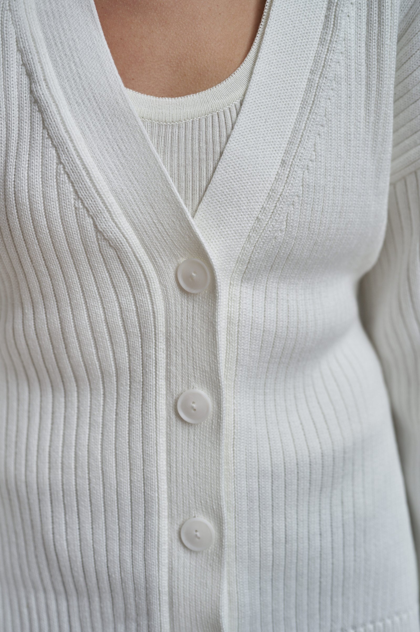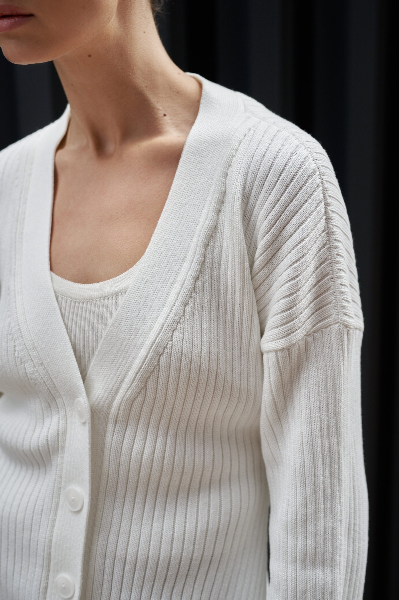 Стильний та універсальний приталений кардиган в рубчик – must-have у гардеробі на будь-який сезон. Модель виконана з м’якого натурального трикотажу, приємного до тіла, зі зручним V-подібним вирізом та застібкою на чотири ґудзики. Рельєфна фактура додає образу вишуканості, а вільний крій забезпечує комфорт у щоденному носінні. Поєднується як із базовими топами та футболками, так і з сукнями чи сорочками. Ідеальний варіант для багатошарових луків.