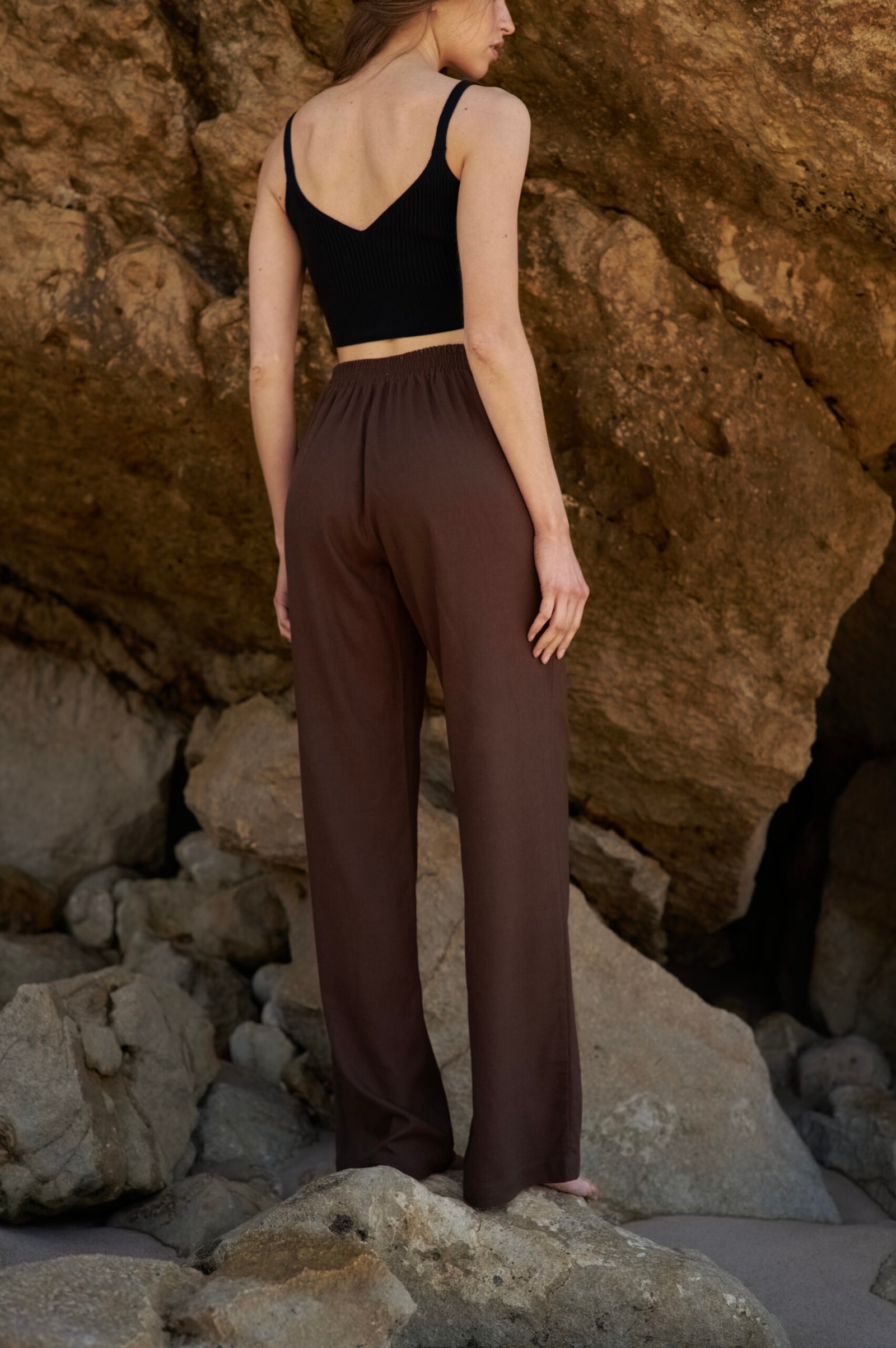 Штани високої посадки вільного крою з натурального легкого матеріалу – льон-віскоза. Виріб має пояс на резинці , комфортні бічні кишені та вільну штанину. Класична кольорова палітра виробу робить штани легкими в стилізації та актуальними для будь-якого приводу, чи то прогулянка, чи то офіс , чи то відпочинок. На відміну від звичайного льону, льон-віскоза мʼякший та приємніший на дотик матеріал , а також менше мнеться.