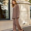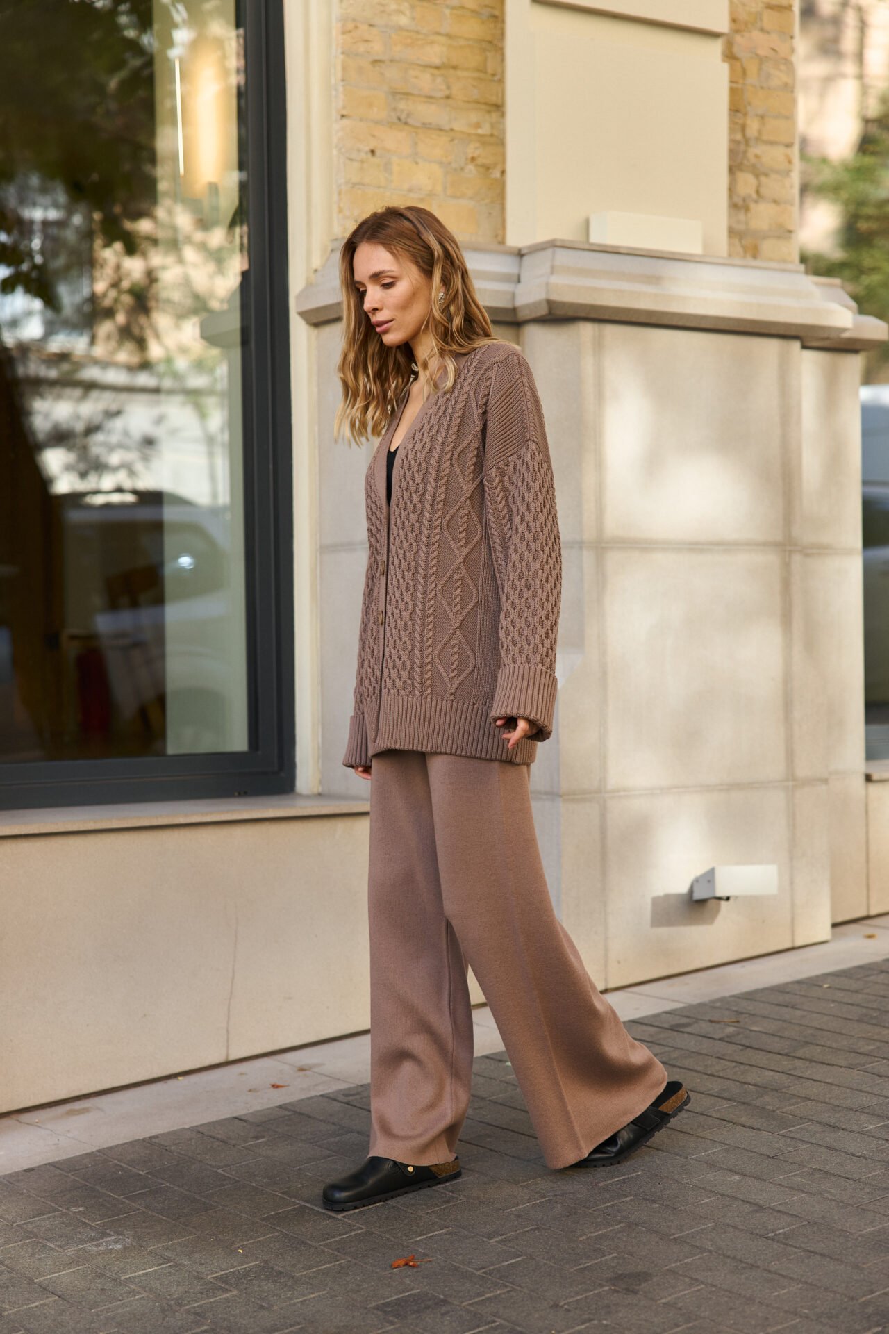 Штани ідеальної високої посадки та вільного крою. Виріб виконаний з натуральної якісної пряжі, тому буде комфортним в догляді, практичним в різні сезони та точно стане улюбленою позицією гардеробу. За рахунок вʼязки – гладь , виріб немає зайвої фактури , тим самим штани легко стилізувати з іншими текстурами та видами матеріалів.