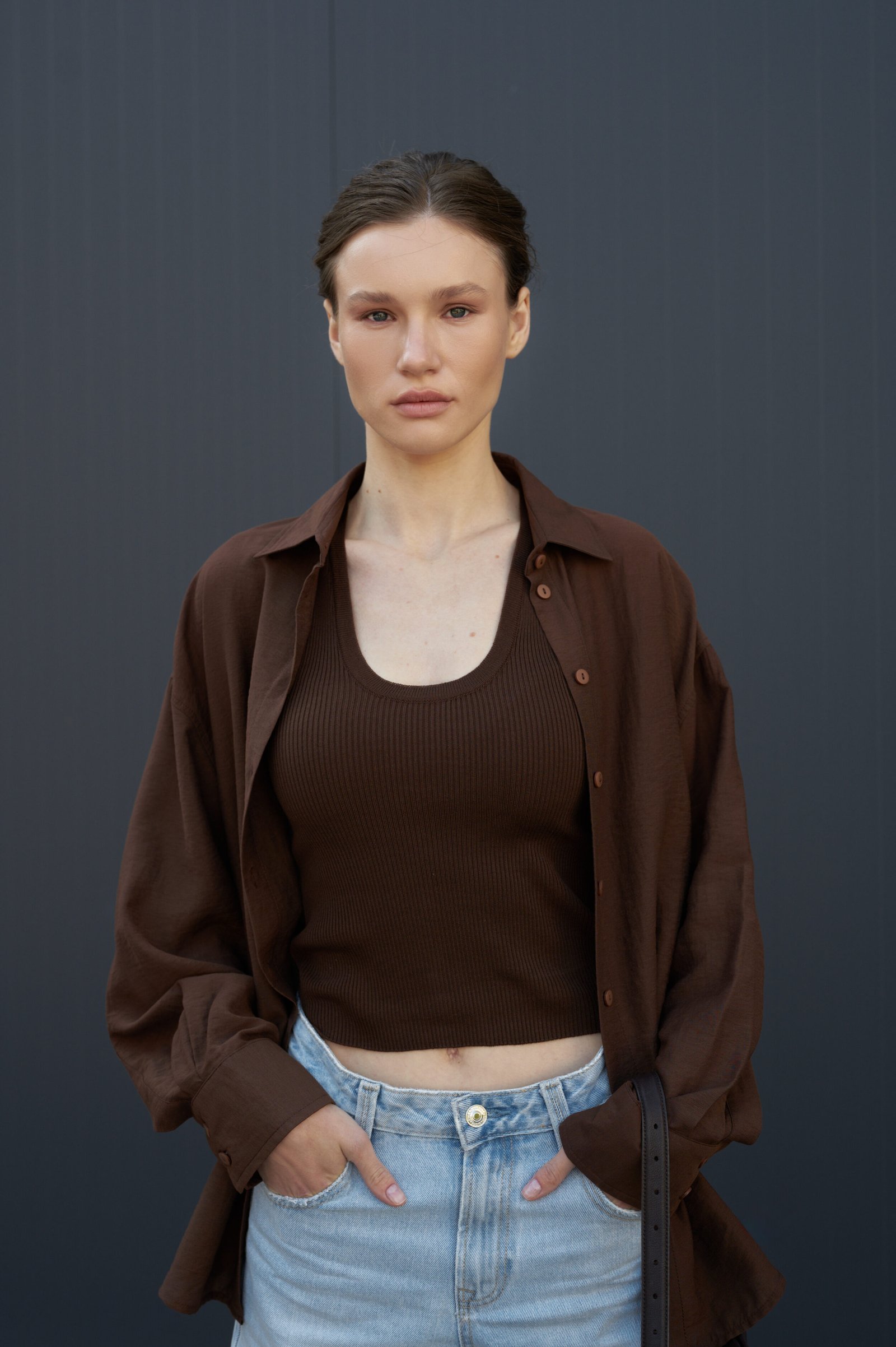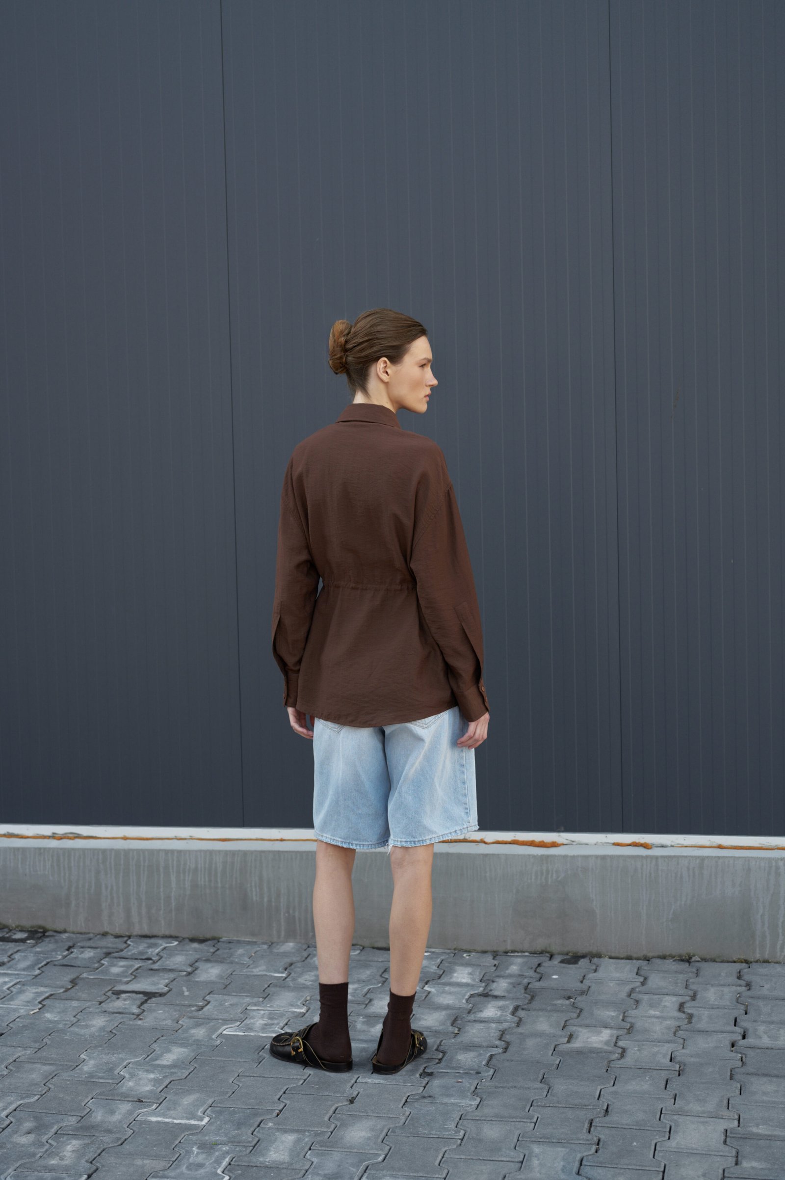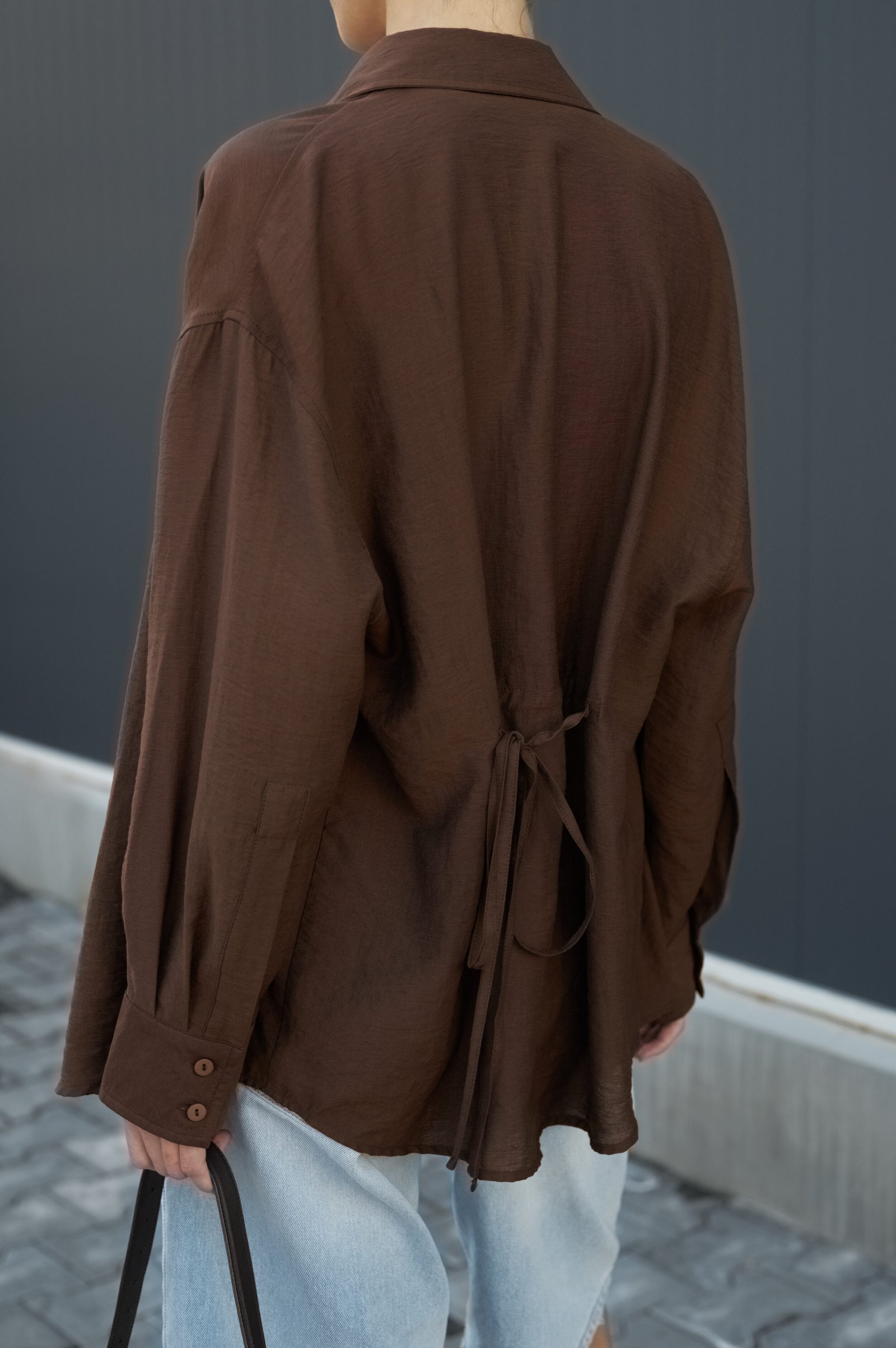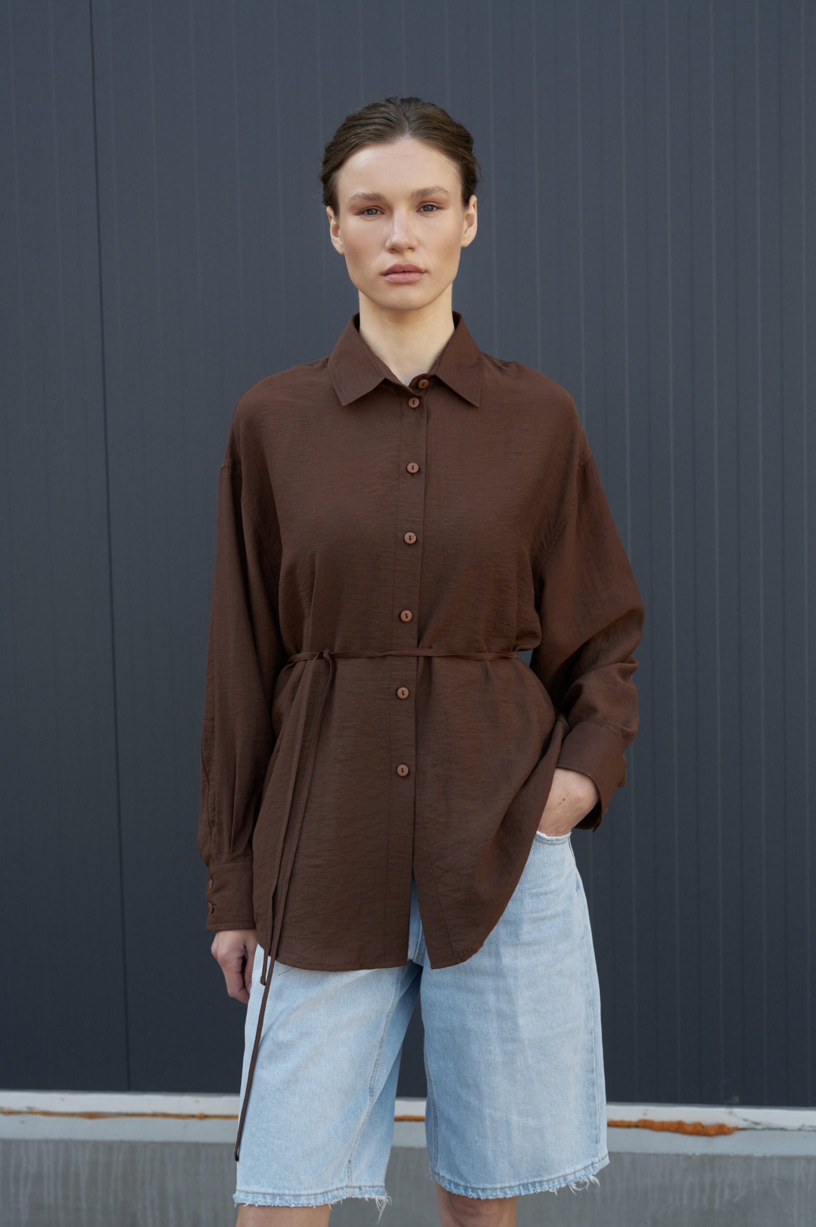 Сорочка “На шнурку” – це втілення легкості та розслабленої елегантності, яка гармонійно впишеться в осінній гардероб. Ми створили її з невагомої, приємної до тіла тканини, що дарує відчуття свободи та комфорту. Вільний, подовжений крій сорочки доповнений тонким шнурком на талії – головним акцентом моделі. Ти можеш затягнути його, щоб підкреслити силует і додати образу структури, або залишити вільним для плавних, летючих ліній. Носи її накинутою поверх лонгсліву чи тонкого светра, поєднуй з улюбленими джинсами, шкіряними брюками або спідницею міді – ця сорочка стане цікавим багатошаровим елементом, що додасть витонченості твоєму осінньому образу.