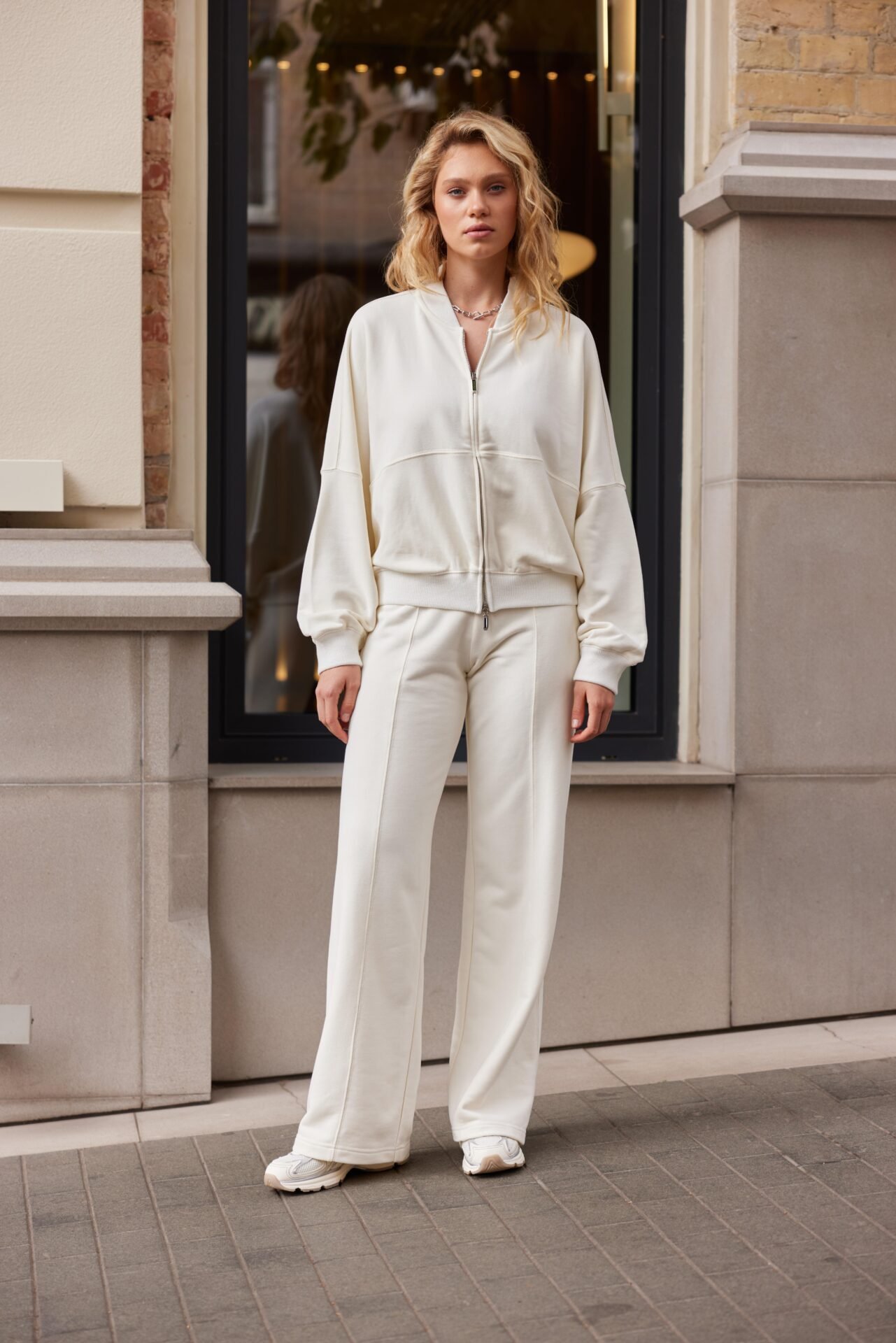 Спортивний костюм виконаний з натуральної преміальної три нитки, з якісною фурнітурою. Зіп-худі має вільний крій , а штани високу комфортну посадку , тому костюм буде комфортний та універсальний на щодень.