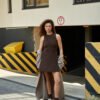 Сукня “Міні” – це втілення впевненості та витонченого стилю. Вона виконана з м’якої та еластичної пряжі – віскози, завдяки чому сукня неймовірно приємна до тіла, а її фактурна в’язка ідеально сідає по фігурі. Високий комір та відкриті плечі створюють елегантний та водночас спокусливий силует, а спідниця А-крою додає образу грайливості і не сковує рухів. Ця сукня – чудовий вибір для осінніх образів у поєднанні з жакетом чи об’ємним кардиганом.